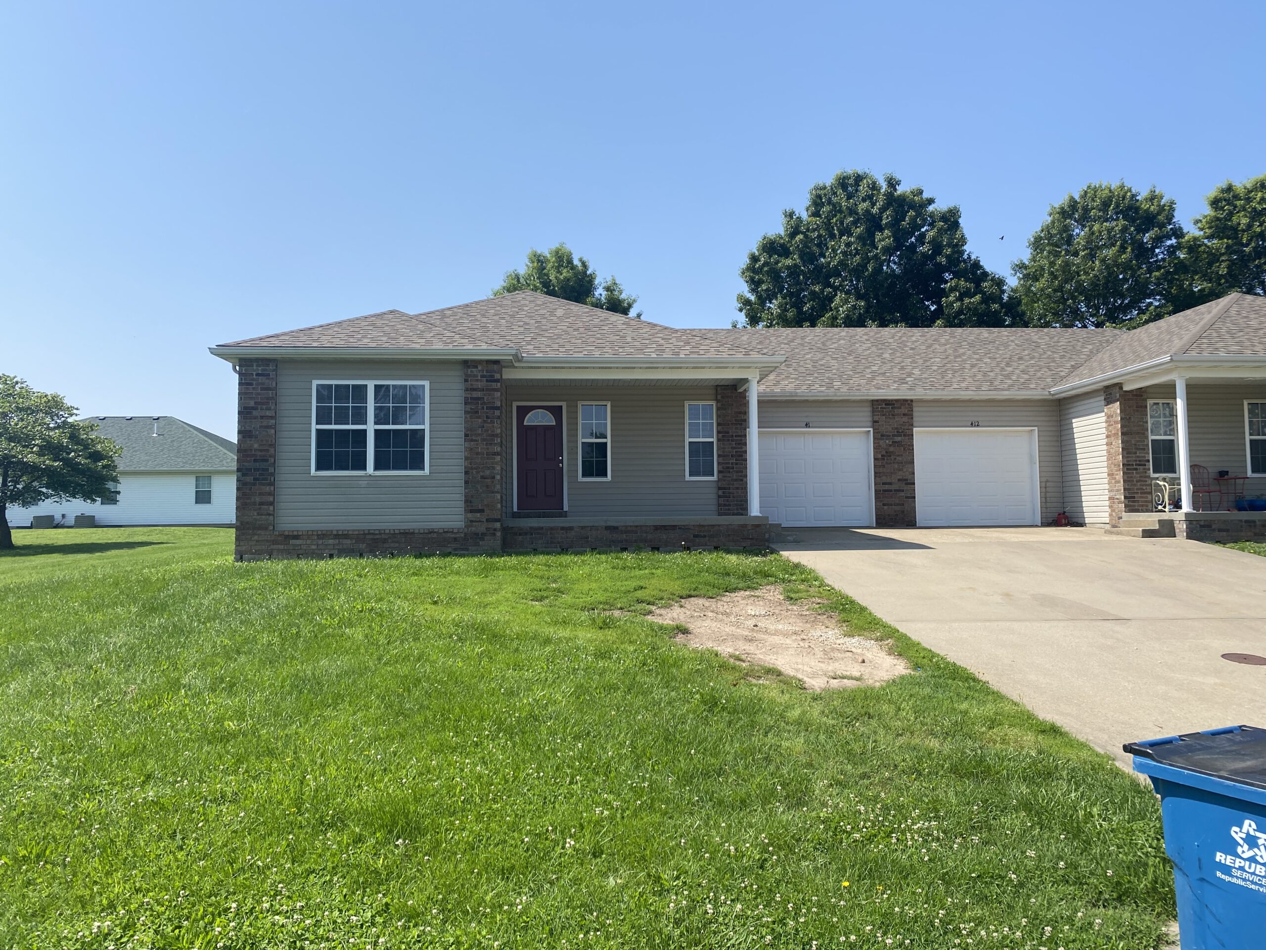 3 bed, 2 bath, 1 car garage duplex on culdesac